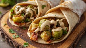 Para preparar estos Shawarma lavá y blanqueá en agua hirviendo y salada 1 kilo de repollitos de Bruselas. Por otro lado ponés a hervir ½ litro de caldo de verduras y ½ litro de leche de avena y cuando hierve espesás con 200 gr de fécula de mandioca disueltos en 50 cc de aceite de oliva y 50 cc de aceite de maní y condimentás con sal, pimienta negra y nuez moscada. Ahora dorás 2 cebollas picadas, le incorporás los repollitos al medio, salteás y agregás a la salsa. Por otro lado hacés una masa con ½ kg de harina integral, sal, oliva, 250 cc de agua tibia y 10 gr de levadura fresca. Realizás bollos del tamaño de una pelotita de ping-pong, los estirás y los cocinás 1 minuto por lado. Para servir calentás las tortillas con parmesano y nueces picadas encima, agregás relleno, enrollás y tostás de ambos lados. Quedan bien con salsa fría de tomate picante y papines hervidos, condimentados con sal, perejil, oliva y limón.