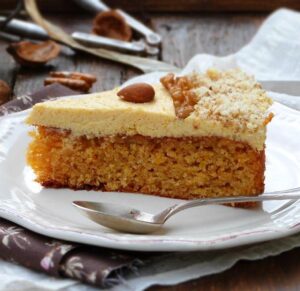 Remojá ½ kg de garbanzos durante 24 horas, cambiales el agua, cocinalos hasta que se ablanden y luego procesalos con un poco de agua del hervor, 1 taza de azúcar integral, sal y la ralladura de 2 naranjas. Distribuí de manera pareja la masa en un molde redondo aceitado y espolvoreado con fécula de mandioca y cociná en horno moderado 20 minutos. Por otro lado remojá 12 horas ½ kg de pasas de uvas, procesalas y condimentalas con nuez moscada, pimienta de cayena y un toque de coñac. Una vez cocida untás la base con la mermelada de pasas y la cubrís con una crema que preparás remojando 200 gr de avena en 1 litro de agua durante 2 horas, licuándola y colándola a una olla donde le agregás una rama de canela, 1 taza de azúcar integral y la ralladura y el jugo de 1 limón, la llevás casi a punto de hervor, la espesás con 3 cucharadas de fécula de mandioca o de maíz disueltas en aceite neutro y la coloreás con una cucharadita de cúrcuma. Distribuida la crema dejás enfriar la tarta al menos 2 horas en la heladera, para servirla luego con una salsita fácil: hecha con el jugo de tres mandarinas y una taza de azúcar integral, llevados a fuego medio hasta que se forme un coulis o salsita ligera.