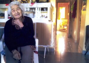 A esta edad a veces me duelen un poco los huesos pero siempre tuve buena salud. Para mí son las comidas que hago. Del estómago por suerte ando bien y nunca tuve problemas porque no como nada industrial ni cosas de supermercado. Aquí de casualidad comemos algo envasado, todo natural y hecho por nosotros. Eso sí, todos los días como carne, capaz que una sopa me cae mal, pero si no hay carne es como si no hubiera comida, porque con las verduras al rato tenés apetito de nuevo. Desde que tengo conocimiento siempre comimos carne de chivo, de oveja, de vaca, de chancho y hasta ahora no me hizo mal y voy a cumplir como cien años. Anteriormente vivía en otra casa aquí cerquita pero se me cayó un árbol encima y la derrumbó así que tuvimos que hacer esta casa en la que estoy ahora. Yo tengo cerca a mi nuera y a un sobrino que vive aquí al ladito. Y ahora vienen llegando los nietos que quieren su lugarcito.