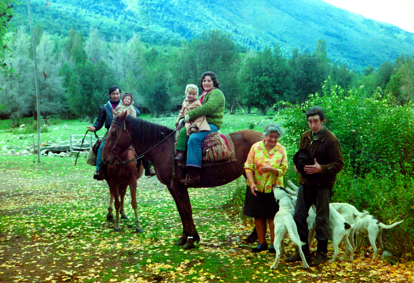 Yo nací al lado de este mismo río un poco más abajo, para el lado de la frontera. Y en el año 1931 conocí a mi marido y me vine a vivir a este lugar donde estoy ahora. En ese momento había muy pocos pobladores y todos éramos familia. Yo era 10 años menor que mi esposo. Nos conocimos por estos lados donde él vino de muy jovencito. Como hacía poco que se había hecho el camino él trabajaba de caminero, lo cuidaba, sacaba todas las piedras que se soltaban y limpiaba el paso. En eso trabajaba cuando lo conocí. En ese entonces a Chile no se podía ir a caballo porque el camino no daba y había que ir puro a pie. Casi todos eran de allá así que estaban acostumbrados. El renuevo era nomás argentino. Y para surtirse de mercadería se iba a Bariloche o El Bolsón. Algunos de nuestra familia nacimos de este lado de la frontera y otros del otro. Pero como todavía no estaban bien claros los límites asentaban los nacimientos en Chile aunque hubiera nacido de este lado de la frontera…